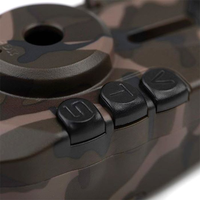 The Fox Mini Micron X fishing presentation camo set includes a alarm head that is loud enough to be heard through the water. It also comes with a matching receiver and 7 volume control so you can find just what you're looking for easily!