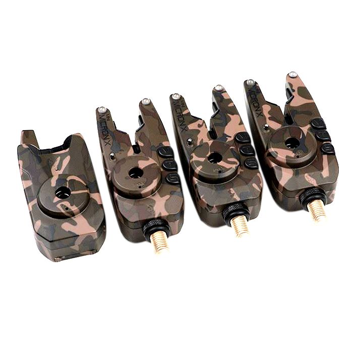 Fox's Mini Micron X fishing presentation set is a great choice for any specialist angler. It contains four-alarm heads with multicoloured LED lights that you can change to one of four different high-vis colours, as well drop back indication and low battery warnings when needed.