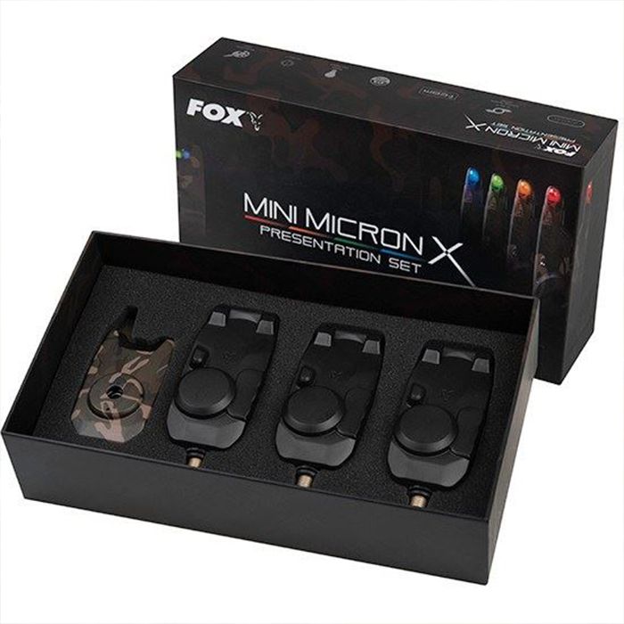 The Fox Mini Micron X Fishing Presentation Set is an updated modernized version of the classic mini micron bite alarm but in an amazing camo print. These are now sold with a matching receiver, and come in two or three-rod packages that include cases for them too!