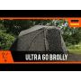 Er zijn drie opties voor de deur: een doorzichtige PVC deur, een dichte Fox Khaki deur en Fox Khaki muggengaas met twee ritsen. Het voorpaneel heeft aan de zijkant ook muggengaas en de achterkant van de brolly bevat ook muggengaas, zodat je volledig beschermt bent tegen vervelende insecten. Het Ultra 60 brollysysteem kan ook uitgebreid worden met het Ultra Brolly Mozzy Mesh Screen (apart verkrijgbaar) als dat je voorkeur heeft.