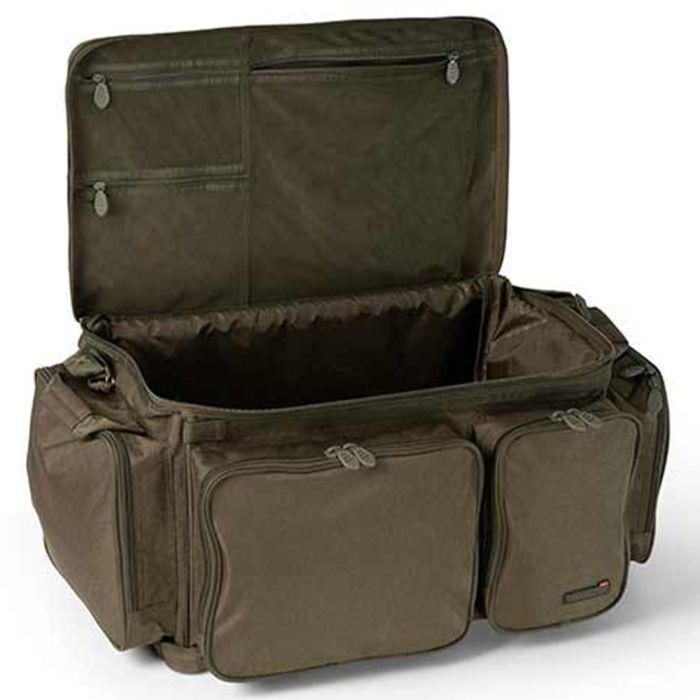 De tas heeft een royaal interieur dat voldoende ruimte biedt voor grote items zoals tackleboxen, kleding, aas en andere benodigdheden.