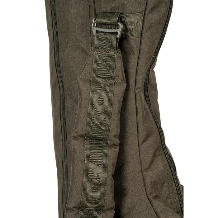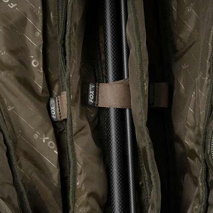 De sleeve biedt plaats aan drie hengels van 10ft met gemonteerde molens, waardoor je meerdere setups mee kunt nemen naar de waterkant.
