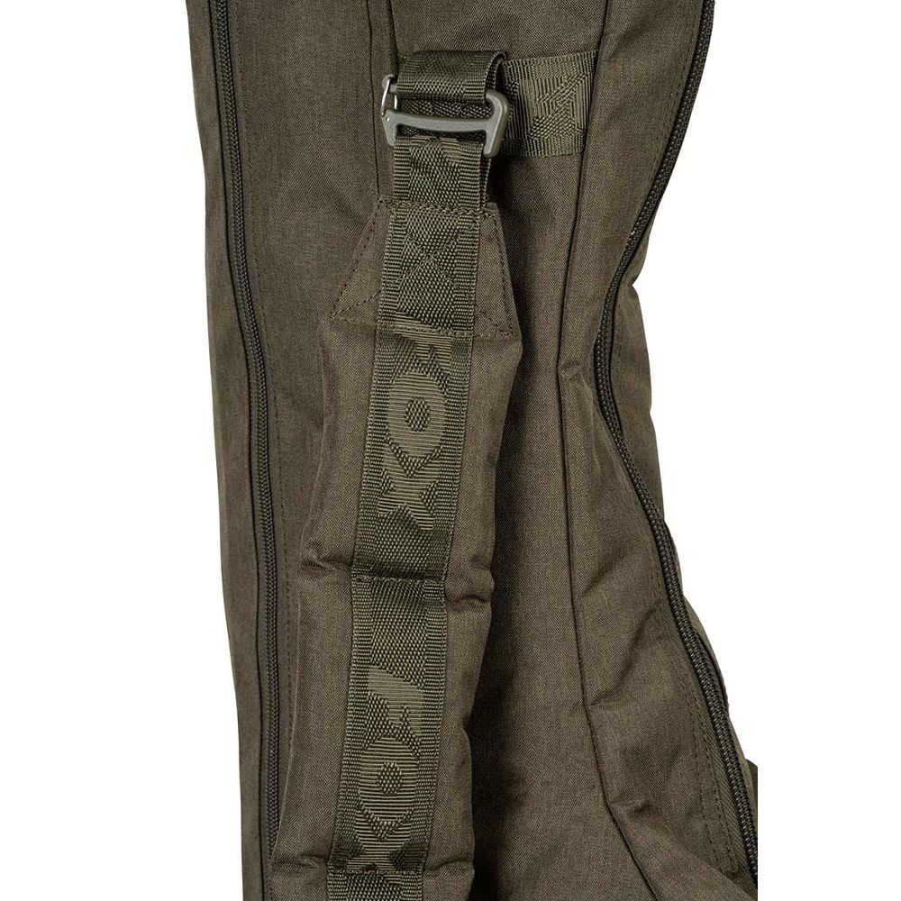 De sleeve biedt plaats aan drie 12ft hengels, inclusief gemonteerde molens. Dit maakt het meenemen van meerdere setups eenvoudig en efficiënt.