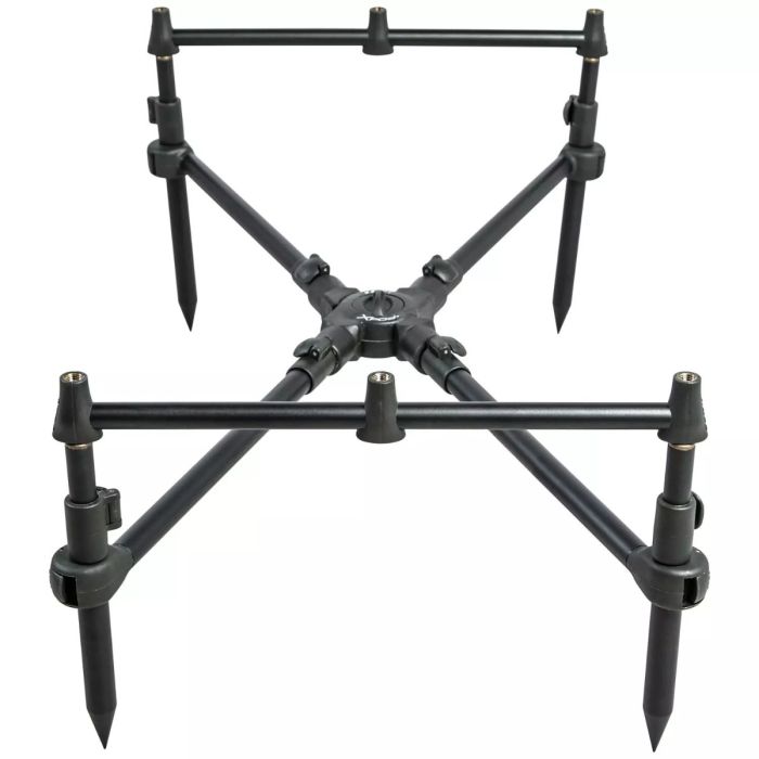 De X-Pod Plus gebruikt hetzelfde unieke frame als de originele X-Pod: vier poten in een centraal bussysteem dat u vervolgens uitwaaiert en banksticks invoegt. Dit maakt het opzetten van de rod pod ongelooflijk snel en gemakkelijk, waardoor je het grootste deel van je tijd op de bank kunt doorbrengen waar je van houdt, in plaats van gewoon apparatuur te installeren. Dit frame maakt de X-Pod Plus ook geschikt voor de opzet van de doelpoststijl en deze rod pod wordt geleverd met een paar Three Rod 'Rod Lok' Buzz Bars.