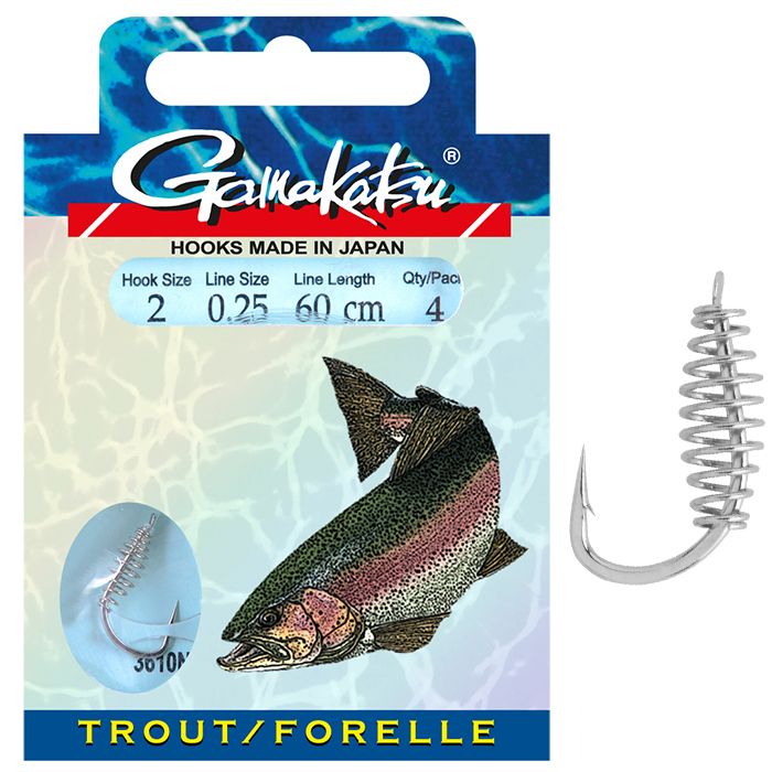 Gamakatsu Trout 3610 Nickle Spiral Hooks Booklet Haken met Nylon