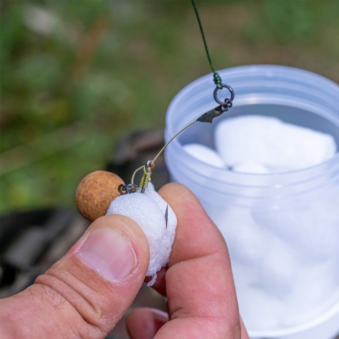 Snel oplossend drijfschuim heeft een veelheid aan toepassingen waaronder het beschermen van haakpunten in onkruid of klitten, het tonen van de positie van een tuigje na het werpen, het voorkomen van klitten bij het werpen van lange hairs, het maken van Spitback tuigages, enz.