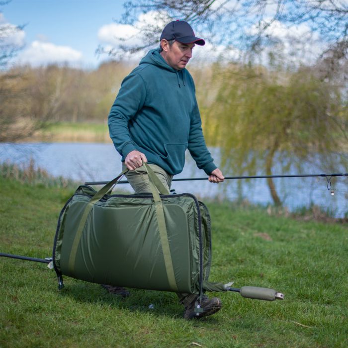 De ideale onthaakmat voor stalking die ook als weegband fungeert. 210D PU volledig waterdicht materiaal met sterke webhandvatten. Dikkere 50 mm beschermende schuimvulling om het welzijn van vissen te beschermen. Zak met rits om kleine schalen, pincetten en visverzorgingsbehandelingen op te bergen. Ideaal voor gebruik als zwerf tas wanneer een mobiele benadering nodig is. Volledig opgevulde 94 cm x 81 cm (37 in x 32in) onthaakplaats. Licht en toch slijtvast ontwerp. Kleur: Dark Olive Green.