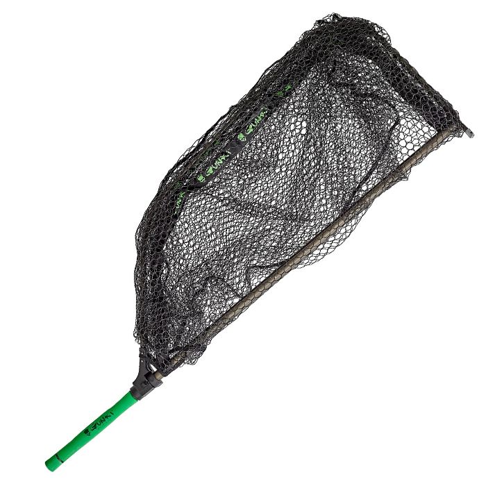 Compact opvouwbaar Gunki-schepnet dat gemakkelijk kan worden opgeborgen in een bootlocker. De kop wordt aan het handvat bevestigd door een ingenieus en veilig vergrendelingssysteem met twee draaibewegingen, wat betekent dat het net binnen enkele seconden kan worden opgezet en klaar voor gebruik is. 1,2 mm massief aluminium frame. Net met platte bodem en breed gaas met PVC-coating, zodat geviste vissen zonder schade in het water kunnen worden gehouden. EVA comfortabele handgreep met liniaalmarkeringen voor het meten van vissen. Stevig net ontworpen voor specimenvissen!
