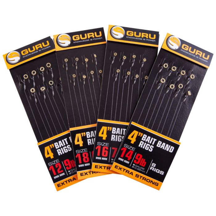 Aasbanden zijn van vitaal belang bij het vissen met pellets, wat een standaard tactiek is op commerciële wateren. Als zodanig zijn onze kant en klare tuigages nu beschikbaar met Guru Aas Bandjes aan de hair. Ze zijn verkrijgbaar als 15" Feeder Hair Tuigages en 4" Method Tuigages. Alle tuigages zijn gebonden met de betrouwbare MWG haken, met uitzondering van de 15" versies, die voorzien zijn van de Pellet Waggler haken.