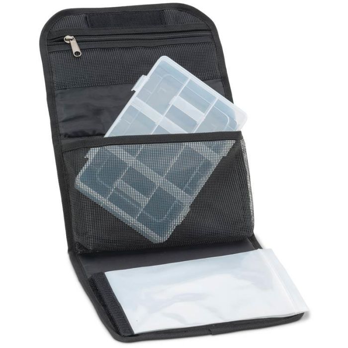 Kleine vakken voor het opbergen van gereedschap, materiaal voor de constructie van leaders en natuurlijk is er ook ruimte om reeds gemonteerde leaders op te bergen. Er wordt een tacklebox meegeleverd voor alle benodigde kleine onderdelen.