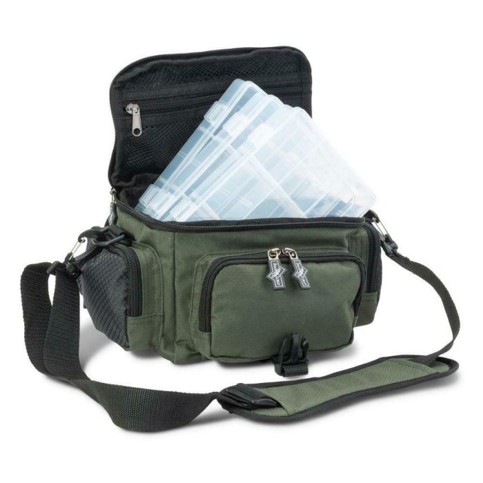 De Iron Claw Buddy Fishing Bag is de perfecte oplossing voor vissers die hun lading moeten verlichten. Deze tas heeft drie tackle boxes in het hoofdcompartiment en drie buitenvakken, perfect voor het opbergen van al je aas en accessoires. Met voldoende opbergruimte zal deze tas je volgende visreis zeker een makkie maken.
