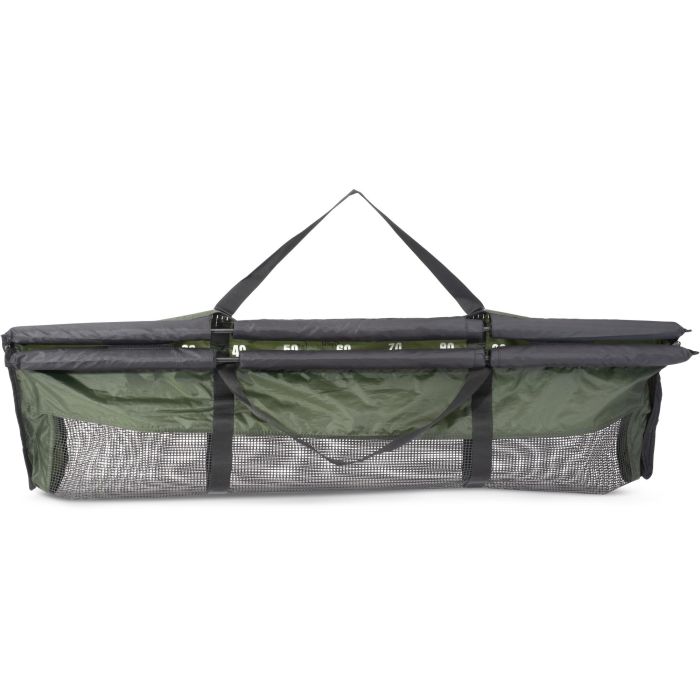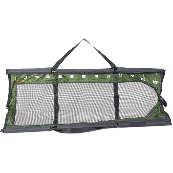 Universeel bruikbare weegzak, die ook geschikt is als hulpmiddel voor het aan land halen en voor het kort vasthouden van een gevangen vis. De weegzak is uitgerust met een bedrukt meetlint (0-120 cm), drijvers met klittenband bevestigd aan de bovenste stangen en ritsen aan de zijkanten beveiligd tegen onbedoeld openen. Daarnaast behoren natuurlijk allround riemen voor het ophangen aan de weegschaal tot de uitrusting van de weegzak. Een transporthoes is ook inbegrepen.