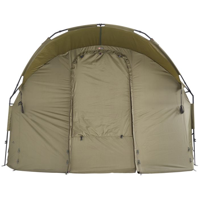 De JRC Cocoon Voortent transformeert de binnenruimte voor gezelligheid, koken, het ophangen van je natte net en nog veel meer. Dit is een waardevolle aanvulling op uw overnacht opstelling. Gemaakt van 10.000 mm HH 210D 100% nylon buitenhuid, biedt de bivvy Voortent waterdichtheid en duurzaamheid voor de meer miserabele omstandigheden. De top van de voortent fungeert als een regengoot, die al het overtollige water naar de zijkanten afvoert in plaats van op je hoofd als je even je hoofd buiten de deur steekt.