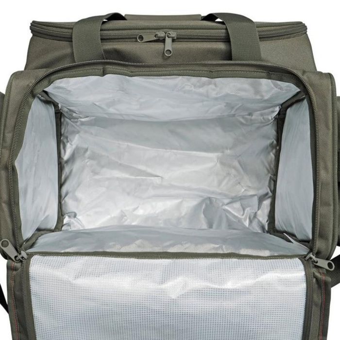 Ideal for one or two anglers, this hamper style bag has a wipe clean insulated main compartment, a selection of cutlery and plates etc. and two roomy side pockets which will accept the Defender medium and small Accessory bags.