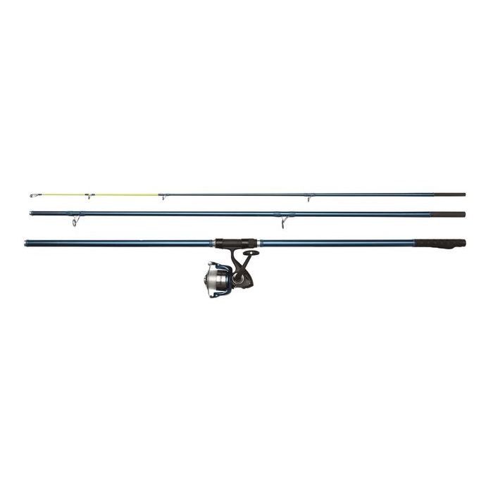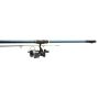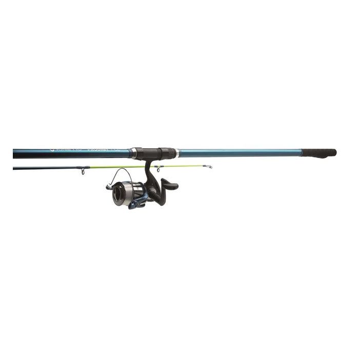 Catapult heavy baits past the breakers with the Kinetic Prodigy CL surfcasting combo that maximizes casting range and fish-fighting power. The Kinetic Prodigy reel is specifically designed to maximize casting distance, without relinquishing full power and control. The reel feature graphite composite body, counterweighted rotor, graphite spool, and powerful drag power. Comes with 0.40 mm nylon monofilament on the spool. High-density fiber blank construction keeps overall weight to a minimum while improving strength and sensitivity. Durable, corrosion-resistant 3-legged guides and reel seat. X-Wrap shrink-tube butt grip provide a secure hold in wet conditions.