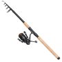 The Kinetic Zathar Tele telescopic combo is the perfect setup for your fishing adventures off the beaten path! Enjoy the smooth performance of this compact reel, plus the silky feel of a premium telescoping rod. Built for lightweight durability, the Kinetic Tournament FD spinning reel features an graphite body and side cover, a machined, double-anodized aluminum spool and a corrosion-resistant stainless steel main shaft. The Kinetic Tournament CL telescopic spinning rod is constructed on a parabolic and light carbon blank. Features include high frame single legged SIC guides, classic graphite reel seat with metal hoods and comfortable full cork handle for comfort in any weather.