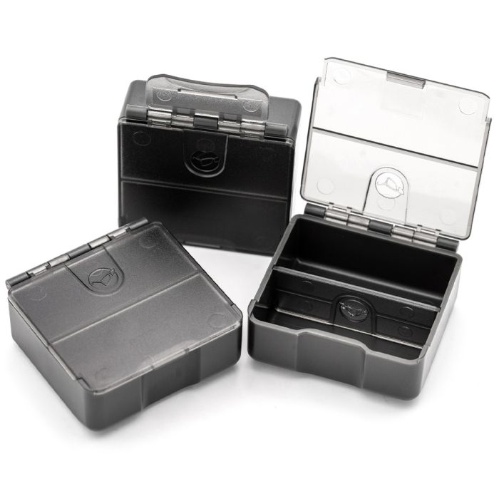 Compacte dozen voor het opbergen van kleine uitrustingsstukken. Deze handige dozen zijn zo ontworpen dat ze perfect in de Korda Visgerei box passen en zijn voorzien van hetzelfde scharnierende identificatielipje als onze nieuwe spoelen. Hierdoor kunt u de dozen niet alleen etiketteren, maar ook gemakkelijk uit uw Visgerei Box halen. Elke doos bevat een uitneembare verdeler om de holte in twee gelijke ruimtes te splitsen. Elke verpakking bevat 3 x dozen en blanco labels.