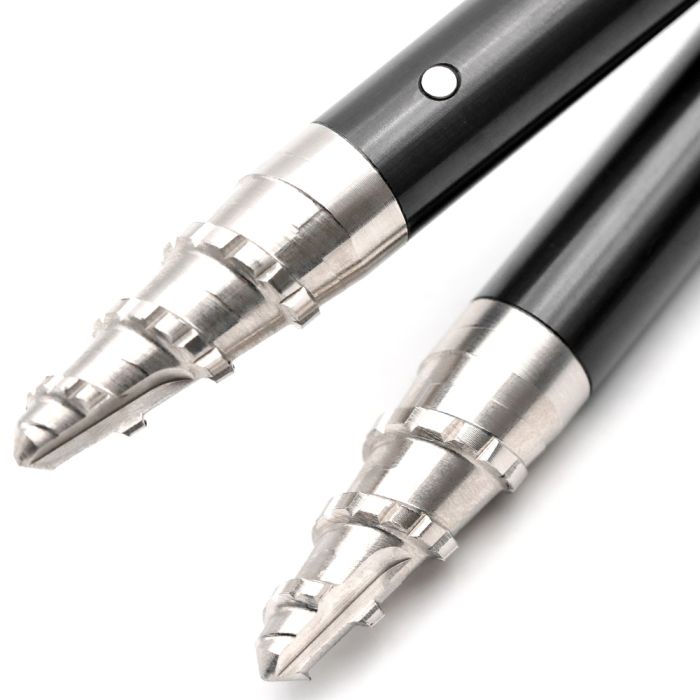 Elke stick is een ding van schoonheid, met speciale groeven om te voorkomen dat de lijn er af loopt, waardoor het gevreesde vogelnestje ontstaat. Ze worden ook geleverd met een T-Bar, die kan worden gebruikt om de speciaal ontworpen punt in zelfs de hardste grond te drijven.