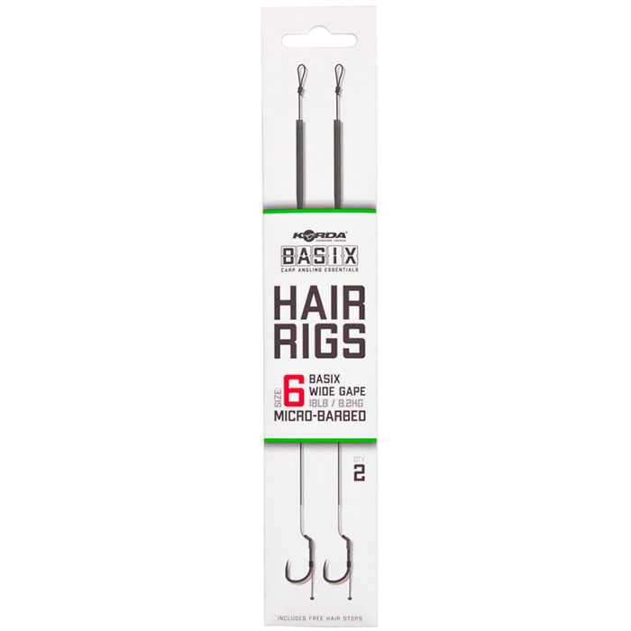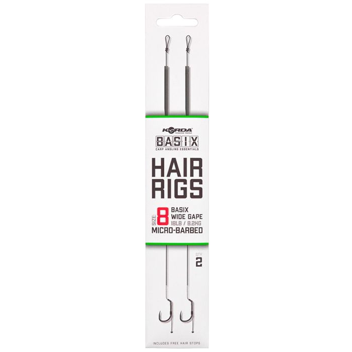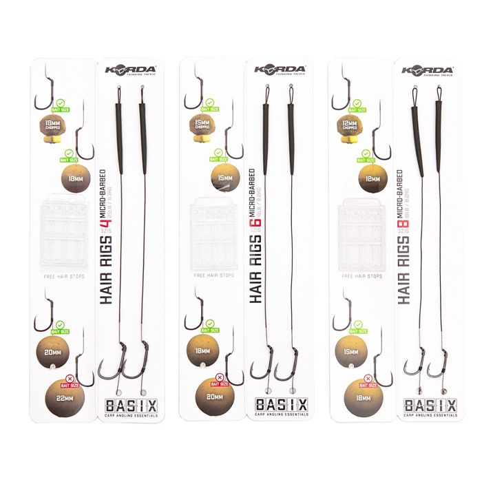 De Korda Basix heeft een soepele hair met een stukje silicone om het op zijn plaats te houden op de schacht en te helpt klitten te voorkomen, en de lengte van die hair is geoptimaliseerd voor haakaas maten die passen bij de grootte van de haak die u hebt geselecteerd. De maat 8 is ontworpen voor 12mm haakaas, maat 6 voor een 15mm en maat 4 voor een 18mm. Geleverd in verpakkingen van 2. Verkrijgbaar in haakmaten 4, 6 en 8 in zowel weerhaak- als weerhaakloze uitvoering.