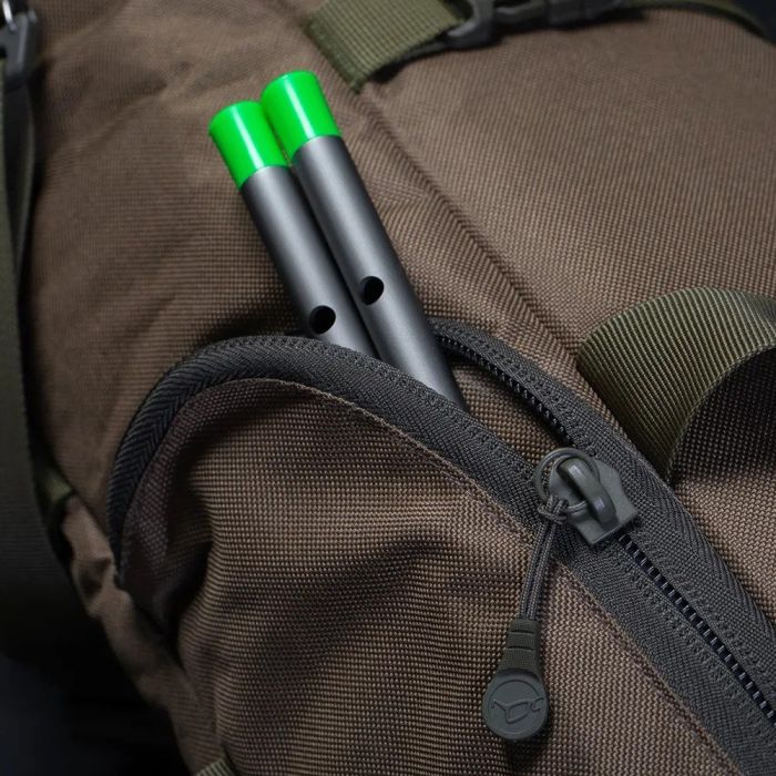 De Korda Compac Telescopic Rod Holdall is speciaal ontworpen om drie volledig opgetuigde 10ft hengels met telescopische onderkanten te vervoeren. De Holdall is zorgvuldig ontworpen om zowel hengels met een standaard als met een gereduceerde lengte te kunnen vervoeren. Hij biedt voldoende ruimte voor zelfs de grootste molens, en aan de zijkant bevindt zich een klein vakje voor het opbergen van lood na je sessie. Ook is er een vak voor een schepnet en een bankstick op de rug van de tas. Compac luggage foedraal is vervaardigd uit hoogwaardige stoffen en onderdelen van militaire kwaliteit, waardoor een georganiseerd, sterk, lichtgewicht en duurzaam luggagesysteem ontstaat. Afmetingen: 135cm x 35cm x 13cm