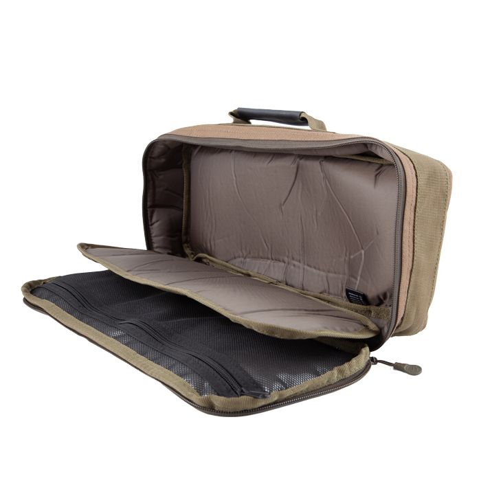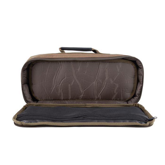 Korda Compac Buzz Bar Tas Large. De Korda Compac Buzz Bar Tas Large is een lichte, volledig gewatteerde opbergoplossing voor buzz bars tot 33 cm (13 inch) breedte. De tas is voorzien van een interne verdeler om de voorste en achterste buzz bars te scheiden en een groot vak in het deksel.