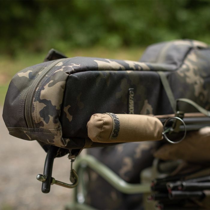 De Korda Compac Three Rod Holdall Dark Kamo is ontworpen om drie opgetuigde hengels en molens te vervoeren. Hij is volledig gevoerd en geeft op een compacte manier bescherming aan 13ft hengels. Twee extra hengels kunnen aan de buitenzijde bevestigd worden. Dit kan zowel met als zonder een rod sleeve.Drie externe vakken langs de achterzijde van het foedraal geven het stevigheid en bieden extra opbergmogelijkheden voor netten, stormpalen en banksticks.
