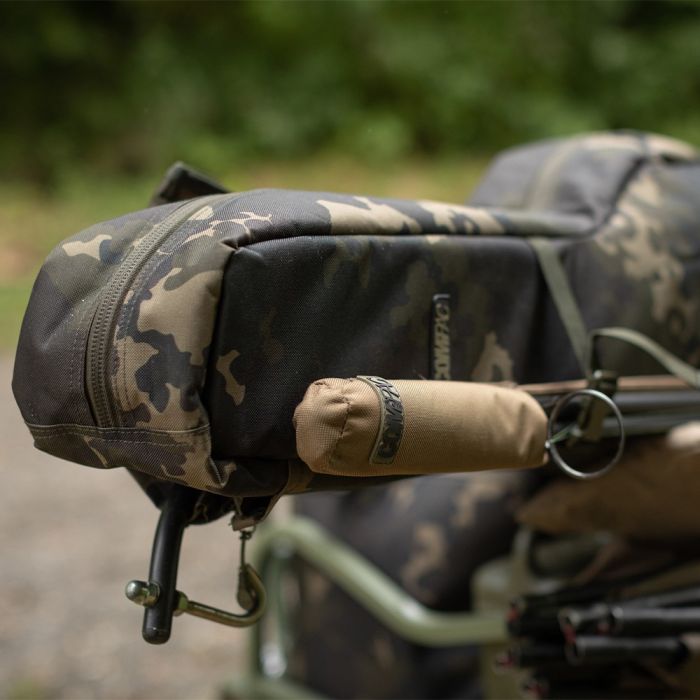 De Korda Compac Five Rod Holdall Dark Kamo is ontworpen om vijf opgetuigde hengels en molens te vervoeren. Hij is volledig gevoerd en geeft op een compacte manier bescherming aan 12ft hengels. Twee extra hengels kunnen aan de buitenzijde bevestigd worden. Dit kan zowel met als zonder een rod sleeve.Drie externe vakken langs de achterzijde van het foedraal geven het stevigheid en bieden extra opbergmogelijkheden voor netten, stormpalen en banksticks