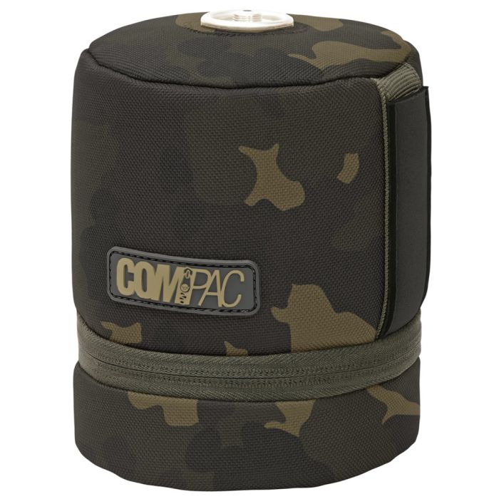 De Korda Compac Gas Canister Jacket Dark Kamo Hoes isoleert ‘500’ formaat gasbusjes tegen de elementen en versterkt zo de werking van de gasbrander. Vakjes voor een lepel en aansteker zorgen dat deze binnen bereik blijven