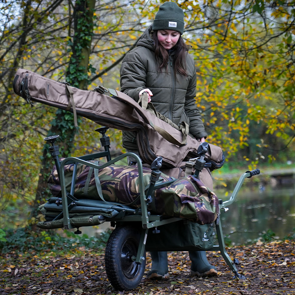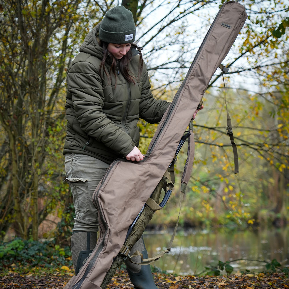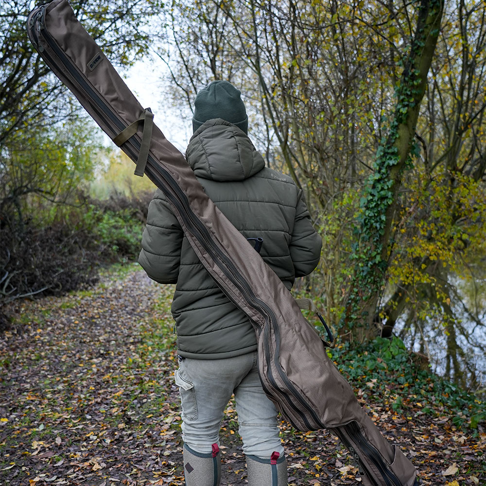 De Korda Compac Drie Hengel Foedraal is ontworpen om drie opgetuigde hengels en molens vast te houden. Volledig gewatteerd biedt het een compacte oplossing voor 12ft hengels. Nog eens twee hengels kunnen extern worden toegevoegd met of zonder hengel sleeves. Drie externe zakken langs de ruggengraat van de foedraal, geven enige stijfheid bij het inpakken, en bieden opslag voor schepnetten, stormstokken en banksticks.