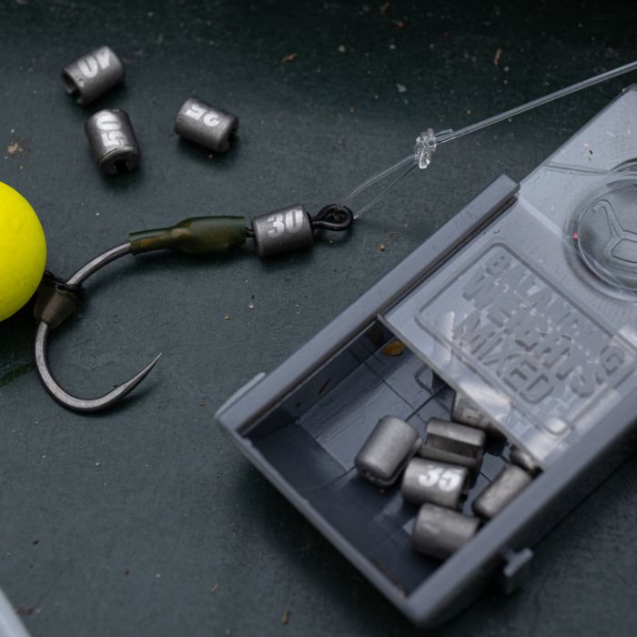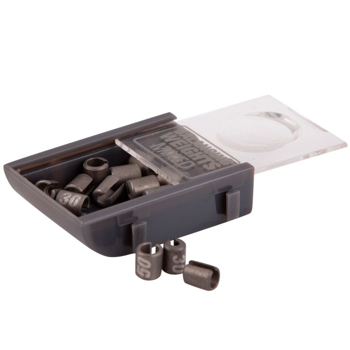 Beschikbaar in 5 gewichten (0.30g 0.50g) met elk individueel product laser geëtst met een nummer om het gewicht te identificeren d.w.z. 0.30g is gelabeld als 30. Bovendien is er een gemengde verpakking verkrijgbaar met 15 gewichten (3 van elke maat). Met de gemengde verpakking kunt u alle gewichten uitproberen tot u er een vindt die perfect is, en dan telkens dezelfde maat gebruiken voor dat specifieke haakaas.