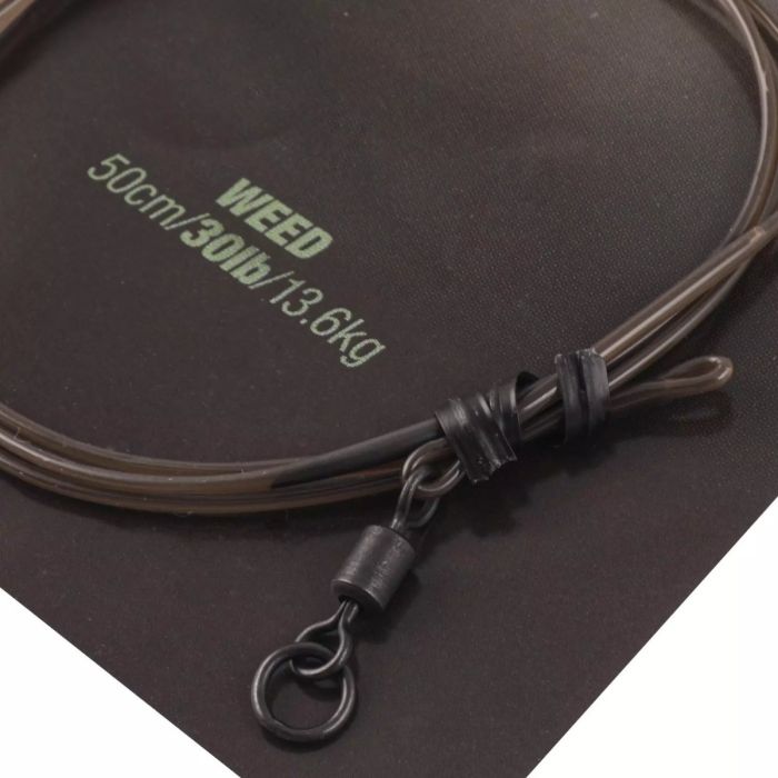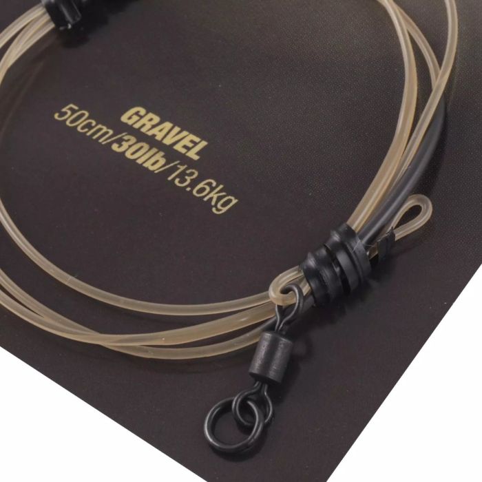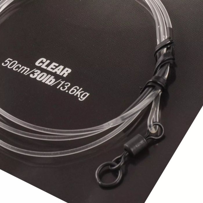 These fused leaders have integral sections of tungsten, ensuring that they stay pinned to the lakebed and help to avoid spooking fish. The Ring Swivel Leader simply comes with one of our size 8 Ring Swivels fused onto one end of it, and with a fused loop at the other end for easy attachment, and detachment, from your main line – the simplest way is to attach it loop-to-loop style. It is the perfect choice for helicopter set-ups and can easily be adapted to fit a Heli-Safe System, plus as long as you moisten the leader first, our Inline Leads, Lead Clips, Running Rigs, and even Bait-Up Method Feeders can easily be slid down the leader to the Ring Swivel, and located in place. The 1m length Dark Matter material used for these leaders is very abrasion resistant and has a breaking strain of 30lb – or 40lb for the Euro version. There are also 50cm and 30cm versions if you require a shorter leader - such as for long range casting. The leader can easily be matched to the lakebed as there is a choice of different colours: Clear, Weed, Gravel, Clay or Silt. Each packet contains one leader.