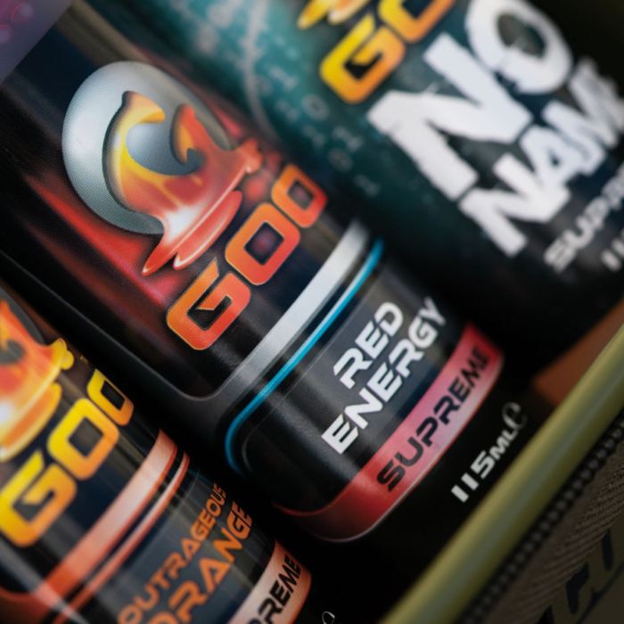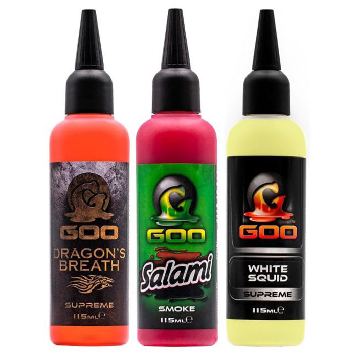 De Supreme varianten zijn uitermate geschikt om goed diep in je aas te laten trekken. De Smoke Goo’s zijn daarentegen wat dikker en plakkeriger van structuur en blijven daardoor perfect op de buitenkant van je visaas of bijvoorbeeld PVA plakken. Hierdoor zijn ze erg geschikt om snel voor de inworp toe te voegen om zo onderwater snel een attractief spoor achter te laten. Mocht je het beste van twee werelden willen combineren, dan is het aan te raden om je haakaas met behulp van een Infuza eerst langdurig in een Supreme Goo te laten weken. Nadat je aas zich helemaal vol heeft gezogen kan je met de dikkere Goo’s je boilies voorzien van een mooie buitenste laag. Door deze op te laten drogen en het proces meerdere keren te herhalen zal je haakaas voorzien worden van een uiterst attractieve mantel. En daar kan geen karper omheen…