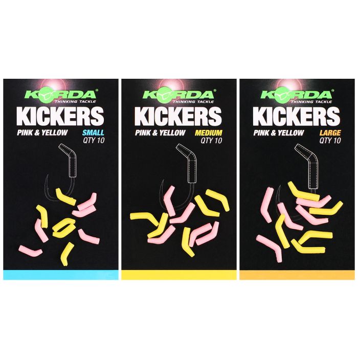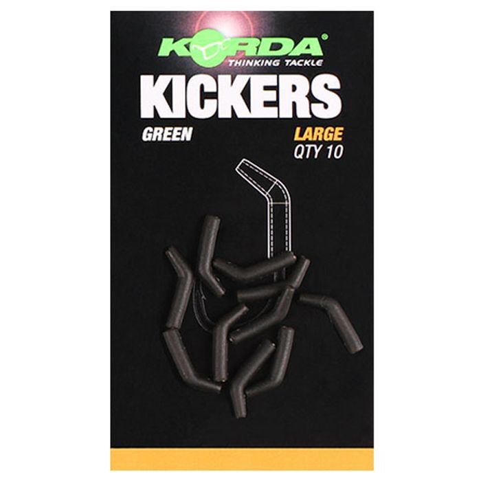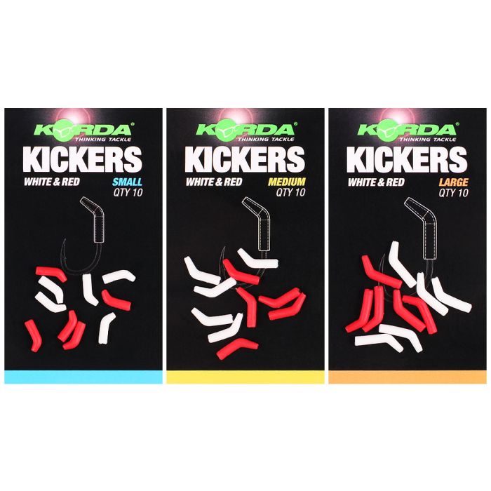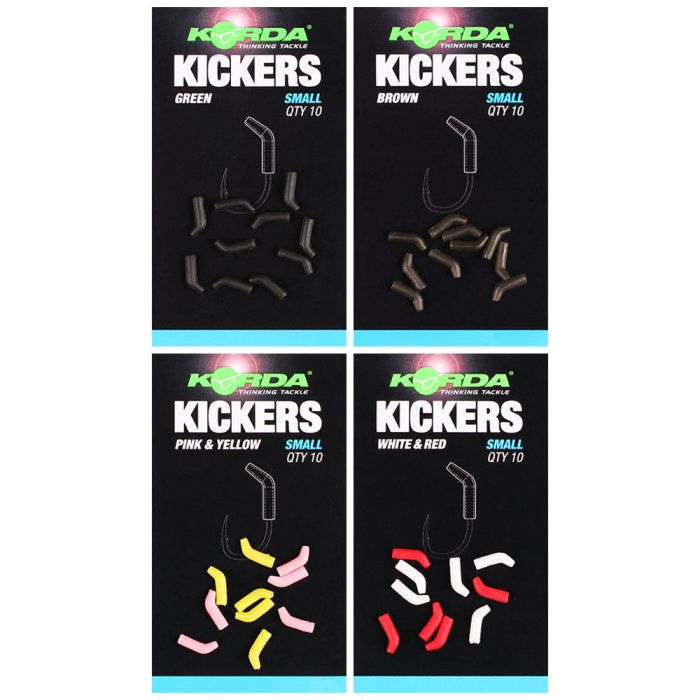 De Korda Kickers krimpkousen maken het makkelijk om snel een onderlijn te knopen zonder daarbij de krimpkous te hoeven stomen. Je schuift ze eenvoudig over het haakoog zonder gebruik te hoeven maken van kokend water. Door hun kromming helpen ze een haak sneller te draaien, terwijl ze tijdens een dril rechtbuigen en daardoor voorkomen dat je materiaal beschadigd raakt. De Kickers zijn in natuurlijke kleuren verkrijgbaar voor die vissers die graag willen dat hun end tackle compleet wegvalt tegen de bodem. Speciaal voor de mensen die het aandurven om de nieuwsgierigheid van de vis te prikkelen, zijn er ook opvallende kleuren. De gedachte hierachter is dat deze, net als bijvoorbeeld het toevoegen van een opvallend gekleurd nepaasje of een fluo pop-up, de nieuwsgierigheid van de vissen wekt. Gaat dit je wellicht een bonusvis opleveren? De teamleden en consultants die met de Kickers krimpkousen hebben gevist, denken van wel.