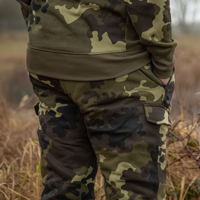 De nieuwe Light KAMO Joggers zijn voorzien van een all over exclusieve custom camouflage print, uniek voor Korda. Deze joggers zijn voorzien van combat-stijl details en een geborstelde-fleece afwerking, speciaal ontworpen voor het vissen, zodat u uw essentiële spullen altijd in uw zakken heeft. De KAMO Joggers zijn gemaakt van een 60/40 mix van katoen en polyester, die geen vocht opneemt, zodat u koel blijft als de temperatuur stijgt. De zakken met rits zijn zo geconfigureerd dat ze de beste opbergmogelijkheden bieden voor het karpervissen, zodat je geen last meer hebt van ontvangers en telefoons die eruit vallen. Bovendien is er extra opbergruimte in de twee zakken met klittenbandsluiting aan de buitenkant van elk been, plus een enkele zak aan de achterkant. De elastische tailleband met trekkoord houdt ze stevig op hun plaats, en de elastische enkelmanchetten voorkomen dat ze omhoog komen.