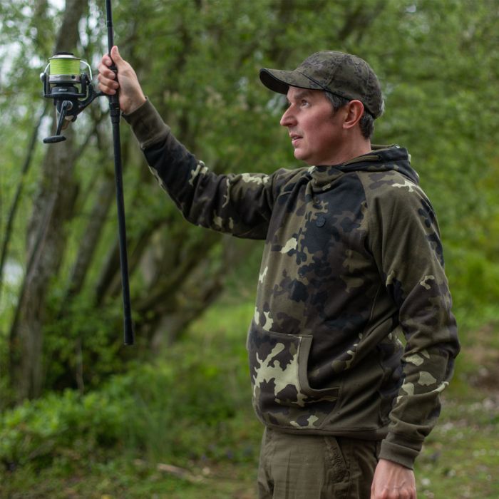 De nieuwe Korda Light KAMO TK Hoodie heeft nu een all over exclusieve aangepaste camouflage print die uniek is voor Korda. Toen Korda de klassieke TK Hoodies lanceerden (voorheen verkrijgbaar in Zwart, Olijf en Houtskool) werden ze volledig opnieuw gemodelleerd om de pasvorm, functionaliteit en styling te verbeteren. Het resulterende kledingstuk is wat wij noemen 'action fit'. Korda's Team Korda Hoodies hebben een raglan schouder en rekbaar onderarm paneel waardoor bewegingsvrijheid, met behoud van de getailleerde pasvorm. Kortom, de TK Hoodies zijn super-comfortabel, en zijn gemaakt om er goed uit te zien en goed aan te voelen.