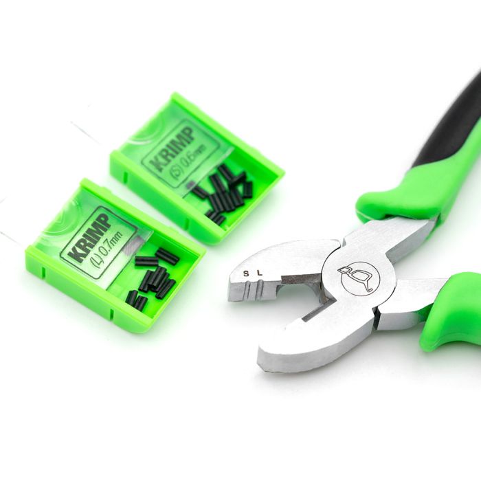 De Krimp Tang wordt geleverd met een gratis selectie van klein en groot formaat krimps, die compatibel zijn met stijve mono lijnen maar ook met de meerderheid van stijve gecoate onderlijn materialen. De kleine krimps kunnen worden gebruikt voor materialen met een diameter van 0.43mm tot 0.60mm en de grote krimps worden gebruikt voor diameters van 0.60 mm tot 0.70mm.