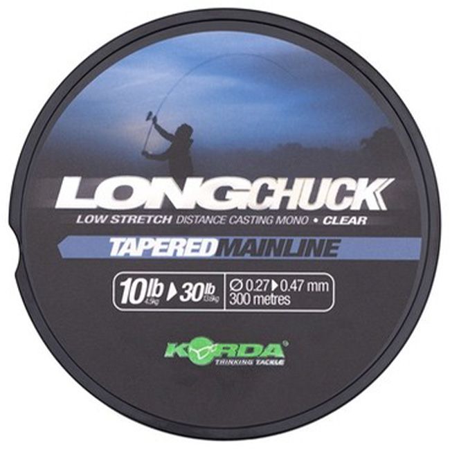 Het komt ook van pas bij het vissen op meren met veel wier waar het wier zich kan verzamelen rond je shock leader knoop. De Long Chuck Tapered Hoofdlijn wordt geleverd in spoelen van 300m, en aan elk uiteinde daarvan is er een sectie van 8m van 0,47mm (30lb) diameter lijn ontworpen om te fungeren als een shockleader, die de kracht van de worp opvangt.