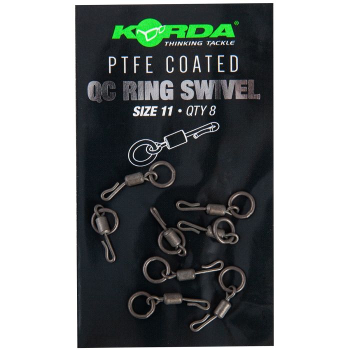 De Korda maat 8 en maat 11 PTFE GECOATE QC RING WARTELS zijn ontworpen om vissers in staat te stellen snel van haaklengte te wisselen met behoud van een sterke en betrouwbare verbinding. De QC, oftewel Quick Change, element is een vaste favoriet geworden bij Team Korda en maakt het mogelijk om de tuigage te wisselen en opnieuw te werpen in een minimale hoeveelheid tijd, profiterend van het visvoer op uw plek.