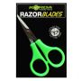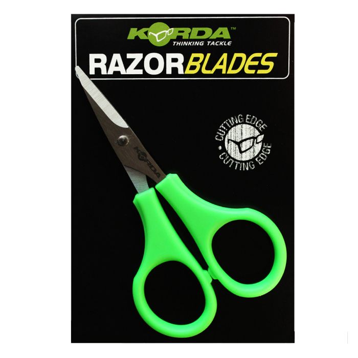 RAZORBLADES Ok, er zijn inderdaad genoeg scharen op de markt. Toch waren wij van mening dat er verbetering mogelijk was. Alle scharen die tot nu toe op de markt zijn gebracht, hebben een vale kleur, waardoor je de schaar heel eenvoudig verliest in het hoge gras. De Razorblades daarentegen niet! De handvaten zijn ontworpen in een felle fluor groene Korda kleur, zodat je de schaar altijd weer terug zult vinden.