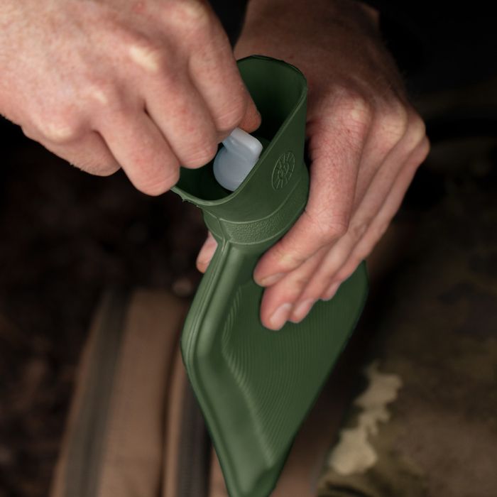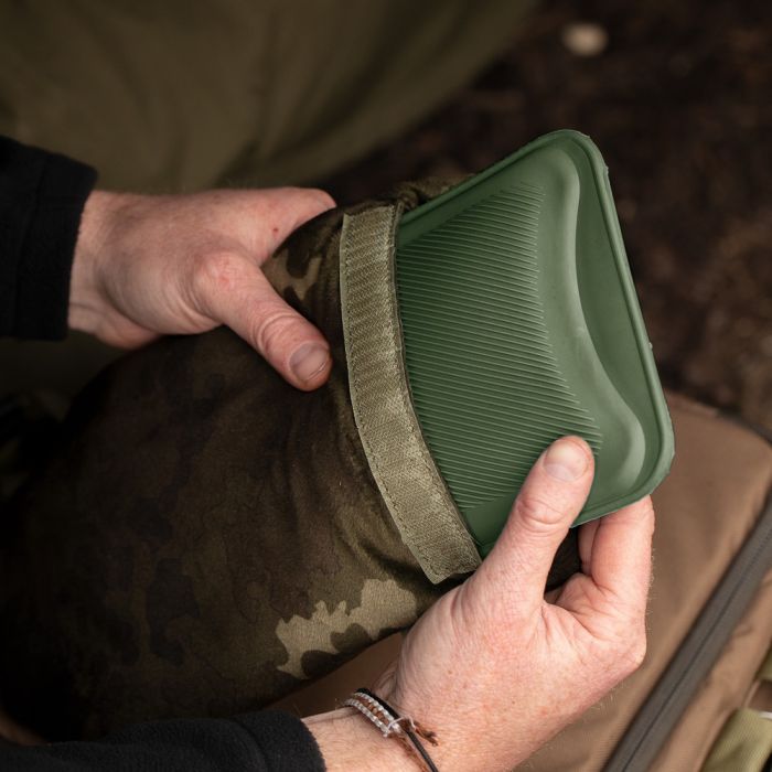 Korda Thermakore Fishing Hot Water Bottle, The Korda Thermakore Hot Water Bottle features a subdued green 1 litre hot water bottle that comes fitted with a light kamo fleece insulated cover maintaining warmth on the coldest of nights. The soft-touch fleece makes the hot water bottle and extremely comfortable addition to any sleeping bag. The bottle can be removed for re-filling via a Velcro fastener which also keeps the bottle safe and secure during use.