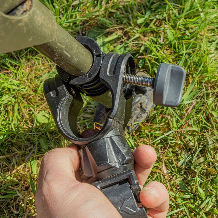 Om de zijbladen te bevestigen, open je gewoon de knik om op je stoelpoot te passen en gebruik je de meegeleverde inzetstukken om de beste pasvorm voor jouw visstoel te bereiken. Je kunt de hoek aanpassen met het handwiel systeem voor de perfecte opstelling.