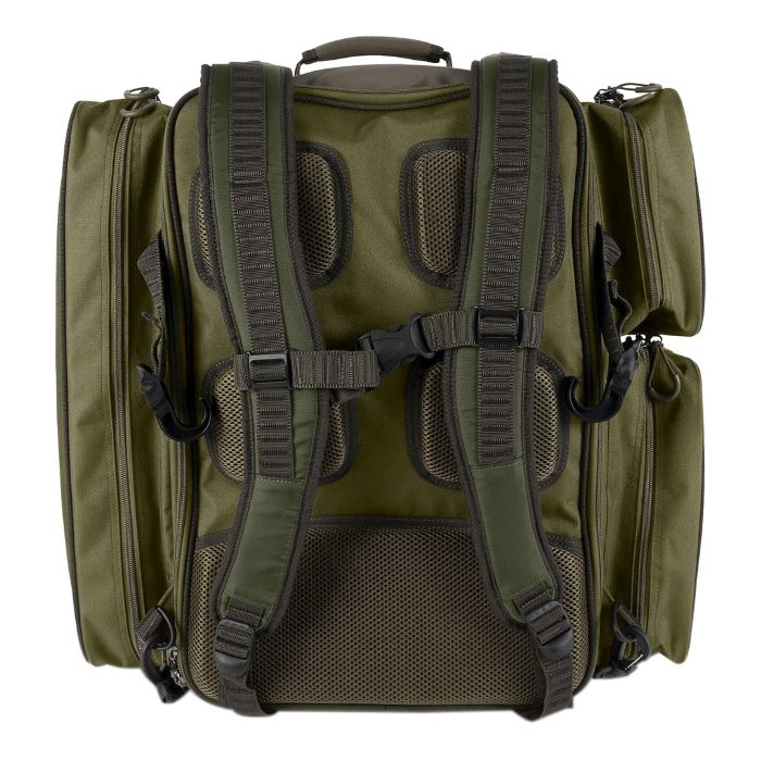 5. **Eenvoudig Vervoeren:** De ruckbag is voorzien van versterkte handgrepen, wat het tillen en verplaatsen van de tas eenvoudig maakt. Dit is handig wanneer je de tas bijvoorbeeld van de auto naar je visplek moet dragen.
