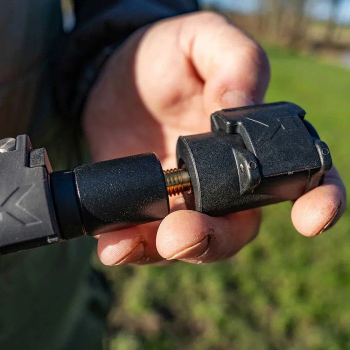 2. **Koppel snel los en wissel accessoires**: Wanneer je wilt wisselen tussen accessoires, zoals van een hengel naar een landingsnet, kun je eenvoudig de adaptor losmaken en het volgende accessoire vastklikken. Dit kan in een handomdraai worden gedaan, zonder dat je ingewikkelde schroefverbindingen hoeft te gebruiken.