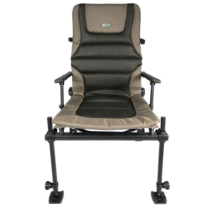 De Korum S23 Accessoire Visstoel Deluxe heeft het Korum gepatenteerde verticale pootontwerp. Dit is een afgerond 23mm vierkant poot ontwerp om de stabiliteit van de stoel te verbeteren.