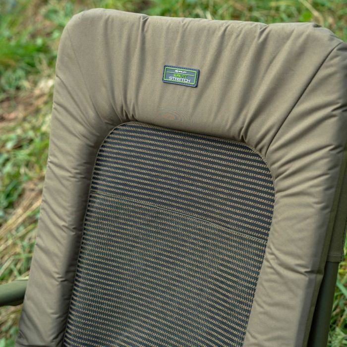 De gewatteerde zitting, verstelbare rughoek en elastische stretchstof zorgen voor maximaal comfort, zelfs tijdens lange vissessies.