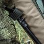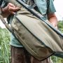 Om het transport naar de oever te vergemakkelijken is de tas voorzien van een gevoerde handgreep en schouderriem.