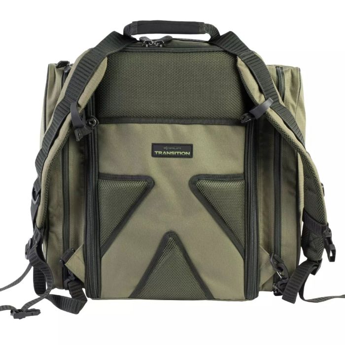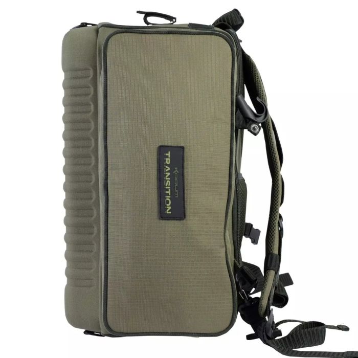 De Transition Rugtas is ook voorzien van D-lussen, een Transition Holster en verbeterde karabijnhaken die uw Korum Transition onthaakmat kunnen vasthouden. Aan de bovenzijde van de tas zitten twee klittenbandlussen voor het opbergen van bijvoorbeeld vouwnetten en oeverstokken.