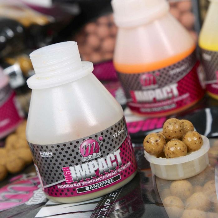 Mainline's High Impact-reeks van het Haakaas Verbeteringssysteem van dips helpen om het aantrekkingsniveau van haakaas, boilies, pellets en grondvoer te vergroten.