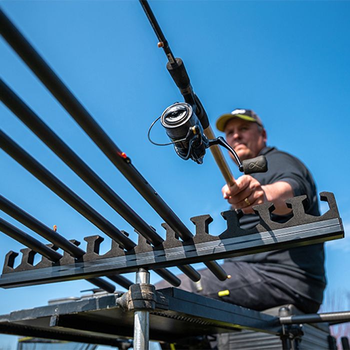 The Matrix 12 Kit Threaded Roost Bar is the perfect solution for anglers who need to keep their top kits or rods organized and ready to go. The hex-shaped EVA foam design prevents lifting out, while the central metal thread can be screwed into a bank stick or seatbox arm for added stability. With a overall width of 70cm and a weight of 422g, this roost bar is both durable and easy to transport.