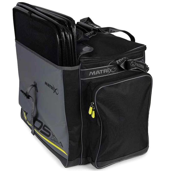 De draagopties van de Matrix Aquos Ultra Carryall maken hem nog aantrekkelijker. De tas is voorzien van sterke, gewatteerde handgrepen die comfortabel in de hand liggen en het tillen van zware ladingen een stuk makkelijker maken. Voor langere afstanden is er een verstelbare, gewatteerde schouderband waarmee je de tas comfortabel over je schouder kunt dragen. Dit handsfree ontwerp is ideaal voor vissers die hun handen vrij willen houden voor hengels, stoelen of andere benodigdheden.